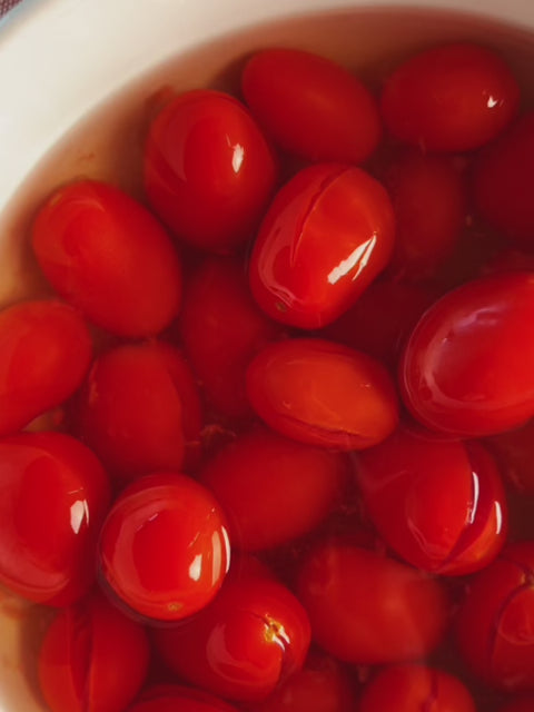 pomodori datterini bio (57%), acqua e sale.